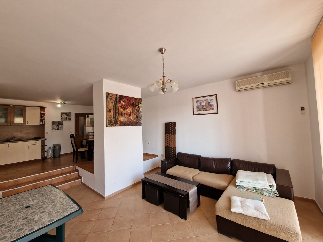 Thanks to its hilly location, the property offers impressive panoramic views of the mountains and the entire Sunny Beach bay from its windows and terraces. This is a place where nature and comfort blend in perfect harmony. The townhouse features an exceptionally functional and convenient layout, including a bright living room with kitchenette, two cozy bedrooms, three bathrooms, and two terraces, ideal for relaxation and enjoying the stunning scenery. The property is sold fully furnished, ready for immediate use or rental.